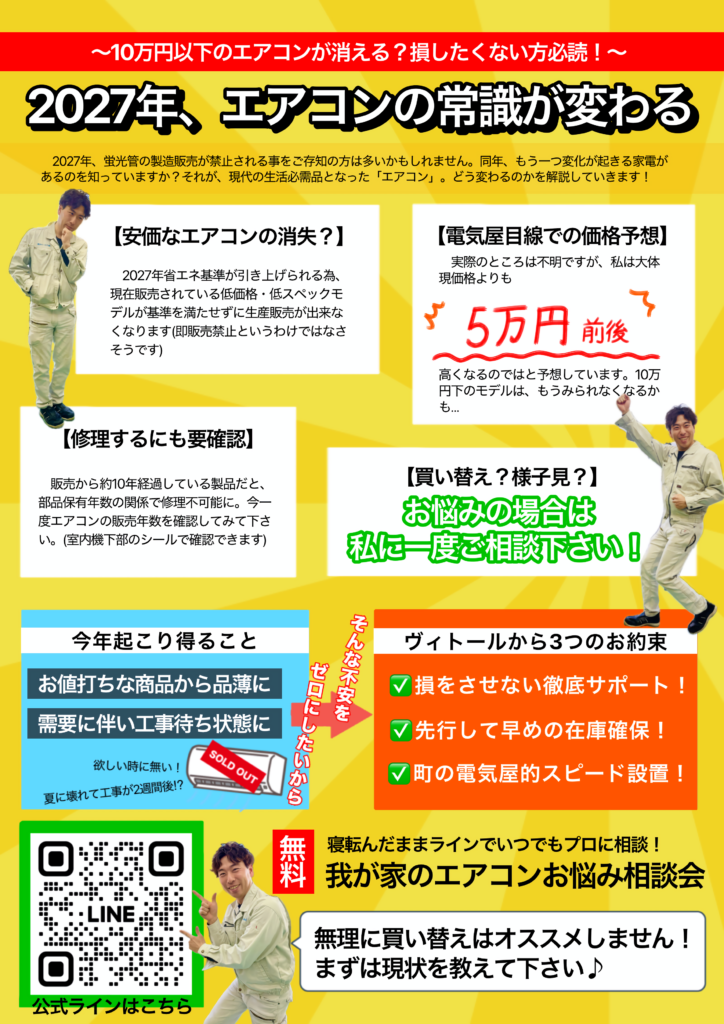最近ニュースでも取り上げられているので知っている方もいるでしょうか?2027年エアコンの省エネ基準の大幅改定に伴い、エアコンの金額が高くなりそうです。(詳しくは添付した画像をご覧下さい)